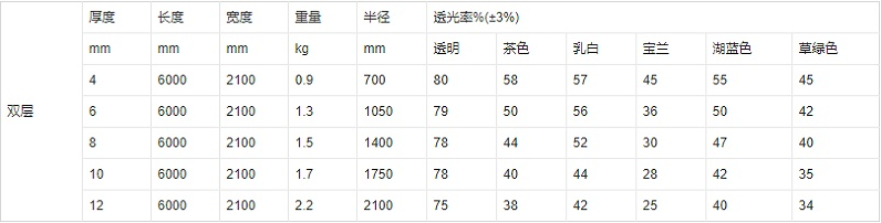 陽(yáng)光板常見(jiàn)規(guī)格